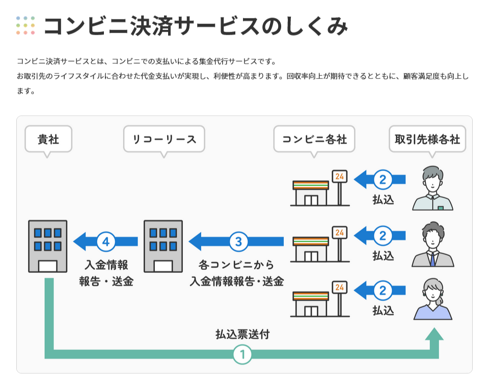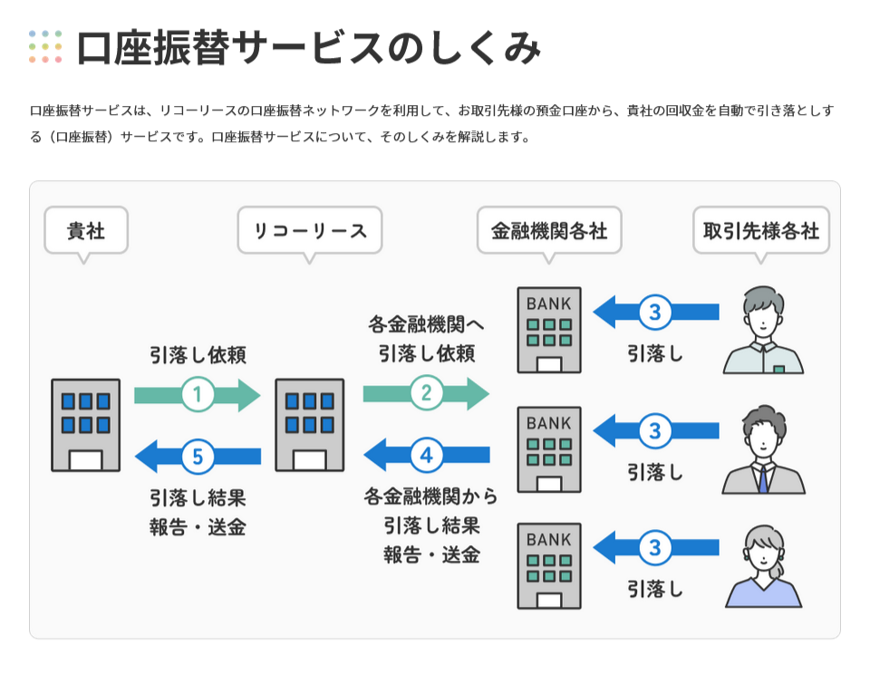 リコーの集金代行サービスは『口座振替』『コンビニ収納』サービスを中心に安心、安全、信頼をコンセプトにご提供します。初期導入費無料、導入サポート充実で、新規事業展開など顧客数が少ない場合もオススメです。