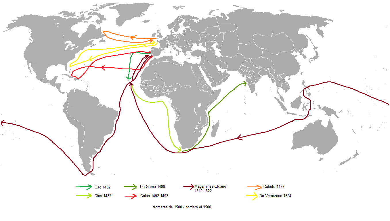 【大航海時代の主な航路を示した地図(Wikipediaより)】
